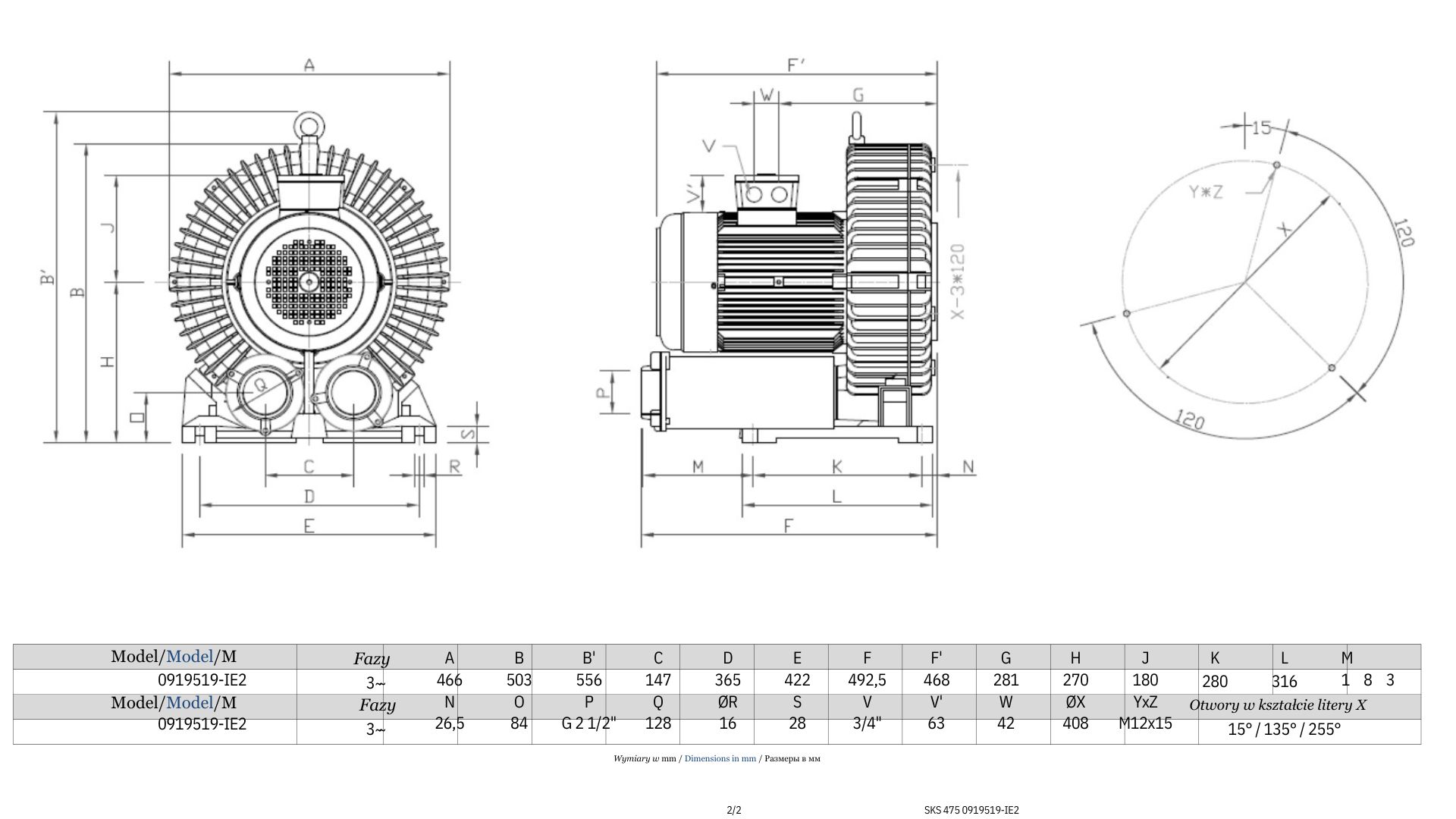Wentylator bocznokanałowy jednostopniowy SKH 250 DS T1.В (210 m3/h, 380V) Grino Rotamik