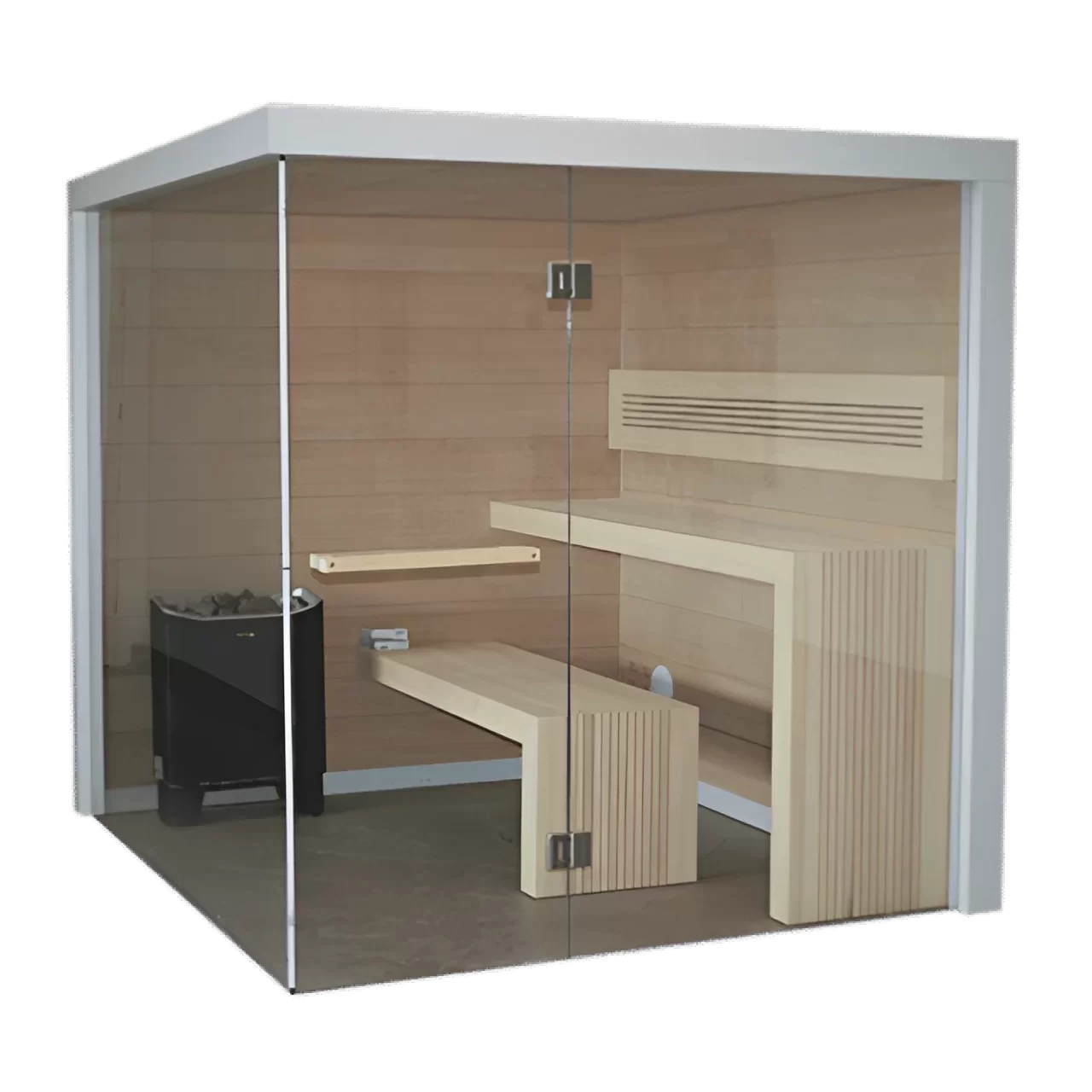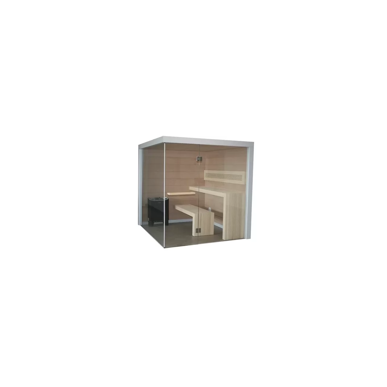 ü Sauna oczarowuje użytkowników swoją elegancją i prostotą zamkniętą w geometrycznej bryle. Czysta forma wnętrza podkreślona kojącym oświetleniem w różnych kolorach wydobywającym się zza oparcia tworzy atmosferę relaksu i odpoczynku. Wygląd tego modelu został opracowany z myślą o osobach ceniących luksus, prostotę i najwyższą jakość. Sauna świetnie prezentuje się z dużym przeszklonym frontem. Całość dopełniają frezowane ławy o prostych kształtach.