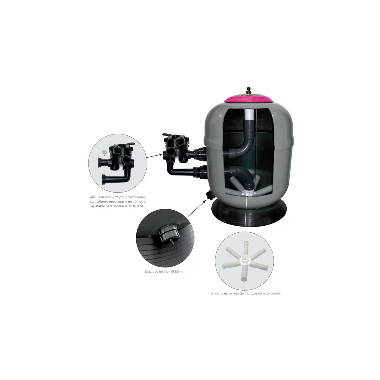 ü  UWAGA : Filtry dostarczane są puste. Należy dodać ilość żwiru i piasku w zależności od filtra.